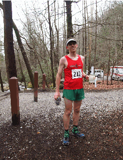 Nearing the end, I heard cheers as Mike crossed the finish line, victorious.  I finished less than 90 seconds later in 6:33:15, ~30 minutes and 1 place slower than hoped (climbing was somewhere between 6000-7500 ft, depending on garmin program).  Uwharrie definitely got the better of me this day.  Mike was elated to win, saying that this race had been his first ultra 9 years prior and he had unsuccessfully tried to win it 4 times.  He ran strong and it’s nice to see hard work pay off.  Shivering in the rain, we sipped some welcome chicken noodle soup provided by some of the many enthusiastic volunteers.  We were treated 20 minutes later to a photo-finish for 3rd/4th, with only a last second wipeout around the muddy final turn separating the two runners.